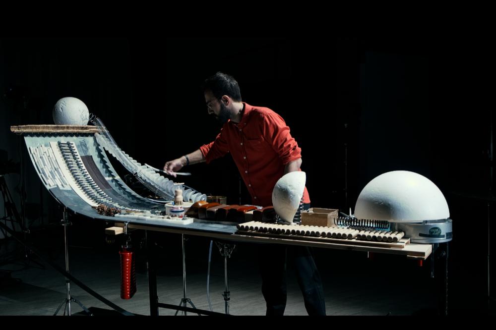 Spektakel statt Routine: Miguel Ángel García Martín verwandelt den verborgenen Alltag eines Schlagzeugers in ein kraftvolles Bühnenerlebnis. In dieser szenisch-musikalischen Performance wird das Schlagzeug zum Hauptdarsteller einer rhythmisch dichten, körperlich intensiven Erzählung. «Aufbau/Abbau» ist Hommage und Selbstbefragung zugleich. Humorvoll, ehrlich und physisch intensiv wirft die Performance einen Blick hinter die Kulissen – dorthin, wo Konzerte beginnen und enden, lange bevor der erste Ton erklingt oder der letzte Applaus verhallt.