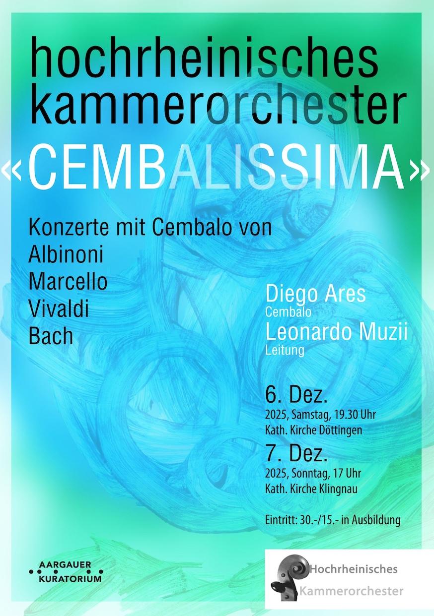 "Cembalissima": Barockkonzert mit Werken von T. Albinoni, A. Vivaldi, B. Marcello und als Höhepunkte zwei Konzerte von J. S. Bach für Cembalo und Orchester (BWV 1052/1054). Diego Ares ist als gefragter Solist und Kammermusiker tätig und wirkt in der Ausbildung junger Cembalisten an diversen Hochschulen.