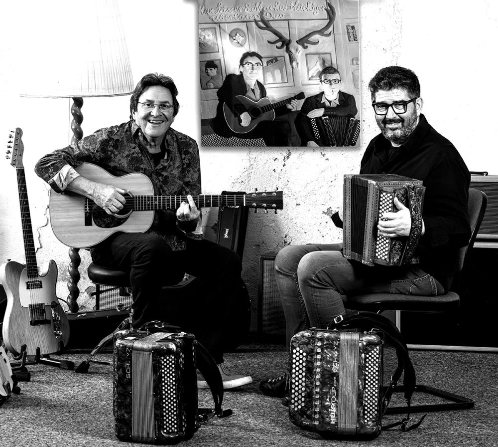 Markus Flückiger entlockt seinem Akkordeon höchst ungewöhnliche Klänge. Seine Eigenkompositionen verströmen eine faszinierende Mischung aus Melancholie und Virtuosität. Wo liegt die Wiege der Schweizer Volksmusik – in Osteuropa, Finnland, Argentinien oder doch eher im Muotathal? Und wenn Max Lässer mit seinen Gitarren, Mandolinen und der Weissenborn Lap Steel auch noch karibische und südafrikanische Ingredienzen beimischt, wird allen klar: hier sind Künstler unterwegs, die ihre eigene alpine Musik schaffen.