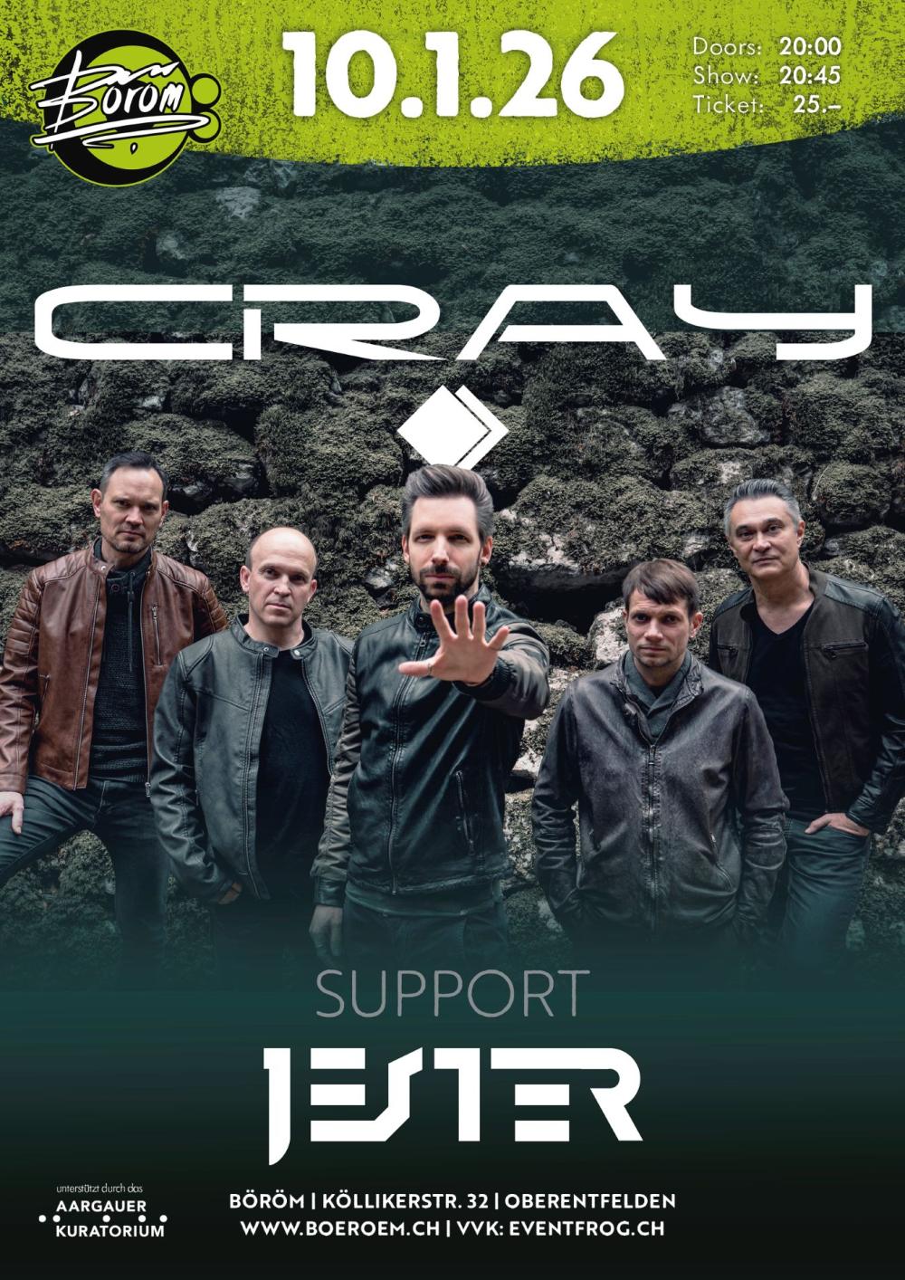 CRAY - Ein einziger Song reichte und Cray wurden als eine der interessantesten Schweizer Bands gehandelt. Auf den Radiohit «Another» folgten die EP «Alive» und zahlreiche Gigs. Die fünf Musiker aus den Regionen Bern, Aarau und Basel lassen sich bewusst Zeit für ihre Songs - mit dem Ziel, ihr breites kreatives Spektrum in ihre musikalischen Werke einfliessen zu lassen. In diesem Prozess gelingt ihnen das Kunststück, jeden Song einzigartig klingen zu lassen und gleichzeitig ihrem sphärischen und charismatischen Sound treu zu bleiben. Jeder Song überrascht mit kompositorischen Wendungen, ausgereiften Arrangements, ausgeklügelten Sounds und musikalischen Finessen.