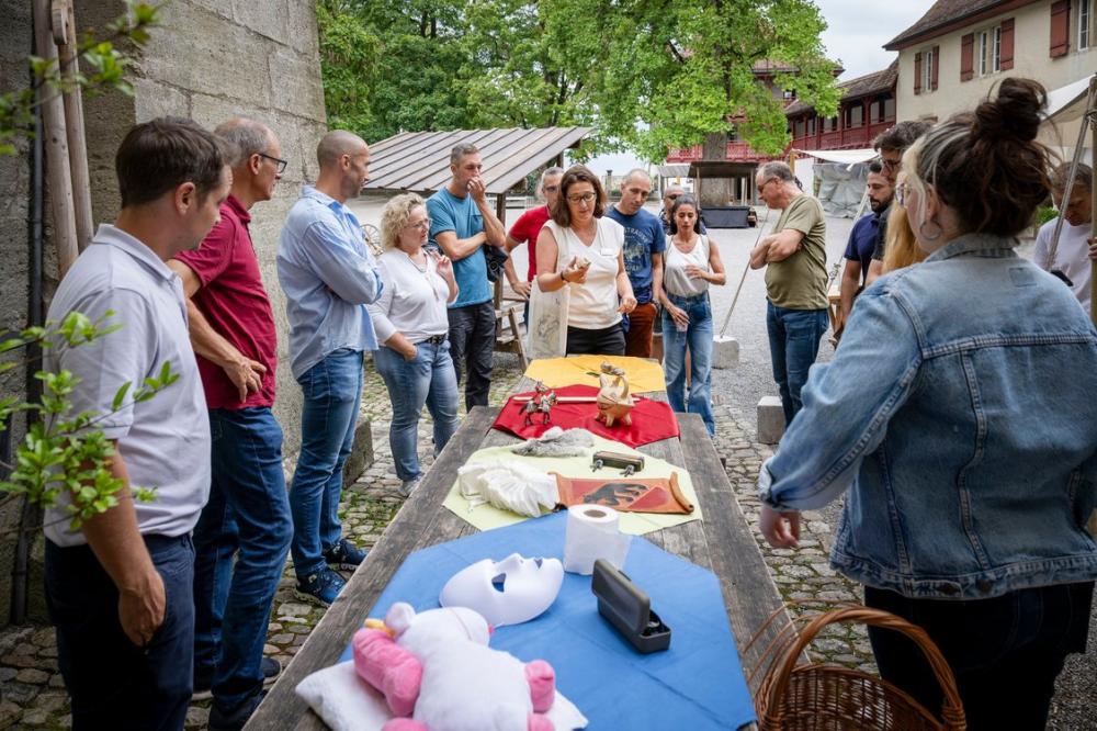 Feuerstein oder Schwert? Halskrause oder Klopapier? Aus einem Fundus wählen Besucherinnen und Besucher fünf Gegenstände aus. Die Objekte setzen Schwerpunkte der Führung und leiten zu den passenden Räumen und den Geschichten dahinter.