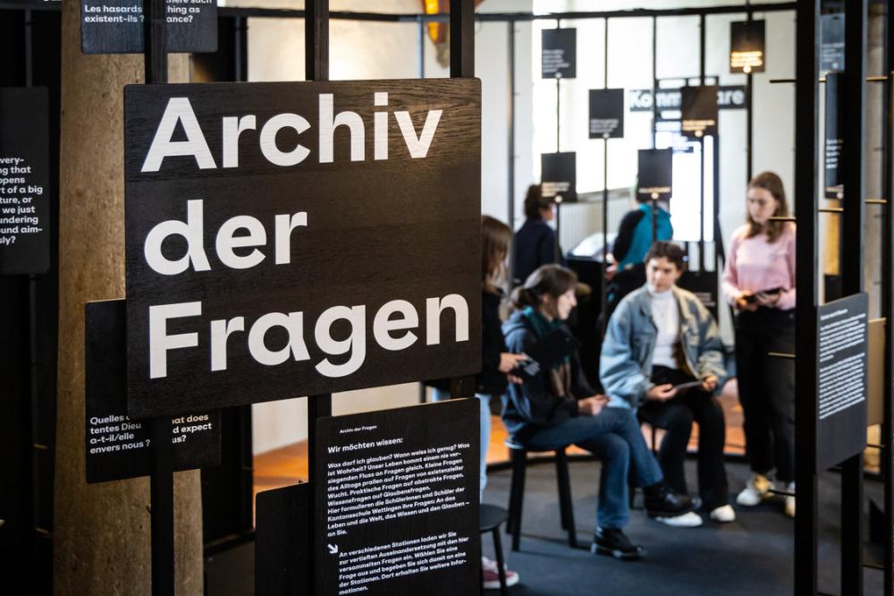 Jeweils am Wochenende begrüssen Schülerinnen und Schüler der Kantonsschule Wettingen die Museumsgäste im Parlatorium des Klosters Wettingen. Im "Archiv der Fragen" wird über Generationen hinweg lustvoll diskutiert, philosophiert – und vermeintlich Wahres infrage gestellt.